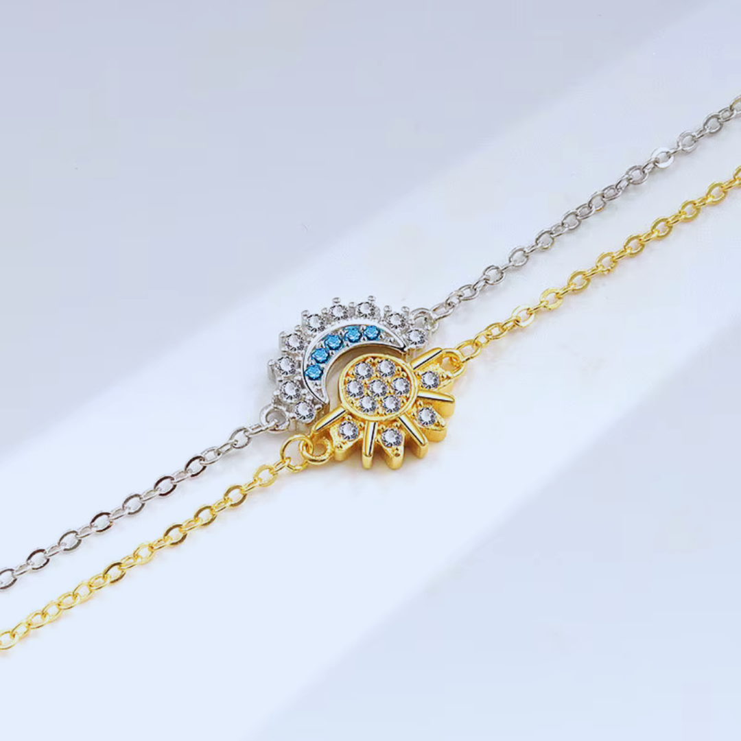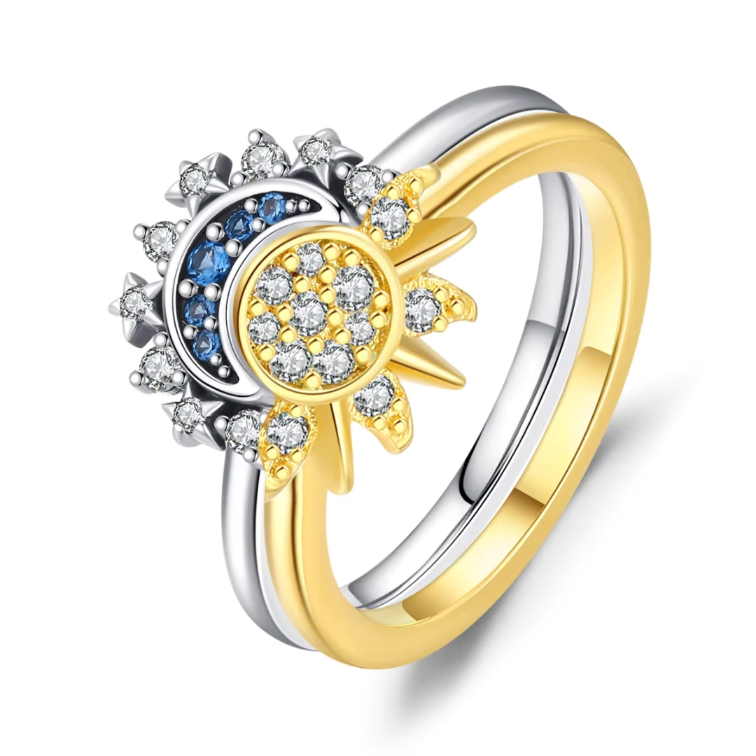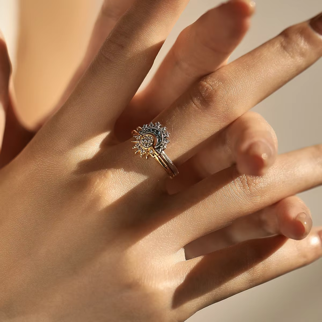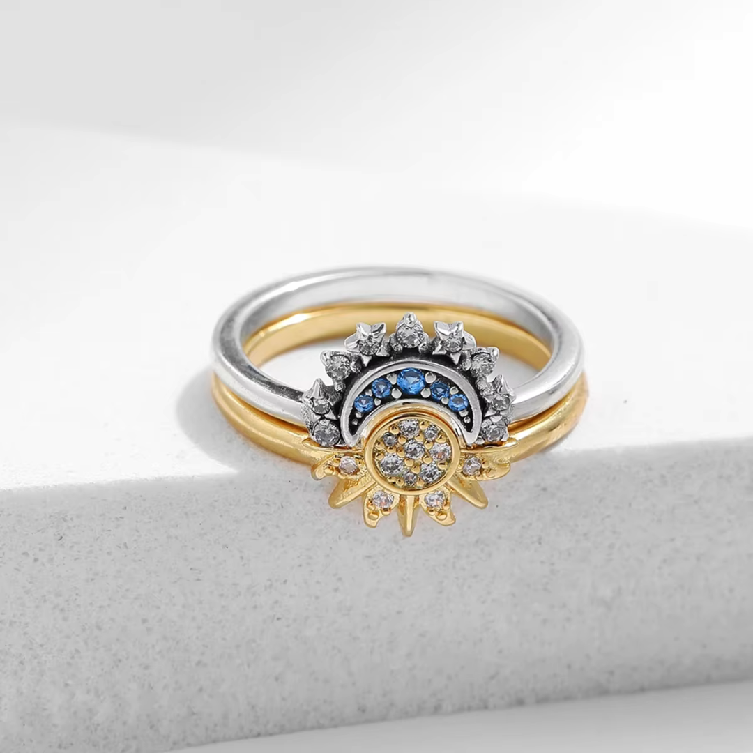 I gioielli con raffigurazioni di sole e luna hanno un forte significato simbolico e spirituale. Il sole rappresenta spesso energia, forza, vitalità e mascolinità, mentre la luna evoca mistero, intuizione e femminilità. Insieme simboleggiano l'equilibrio tra opposti, l'armonia tra luce e oscurità e il dualismo presente nella vita e nella natura. Indossare anelli o bracciali con questi simboli può esprimere un desiderio di connessione con l'universo, equilibrio interiore e celebrazione delle dinamiche tra energie complementari.